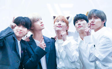 From left to right: CyA, Kanghyun, Dongmyeong, Harin and Yonghoon